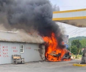 A car crashed into a gas station Thursday, hitting a fuel pump, sparking a fire and killing a woman who became trapped inside the burning service station, according to WTAE.com. State police believe the driver may have been intoxicated at the time.